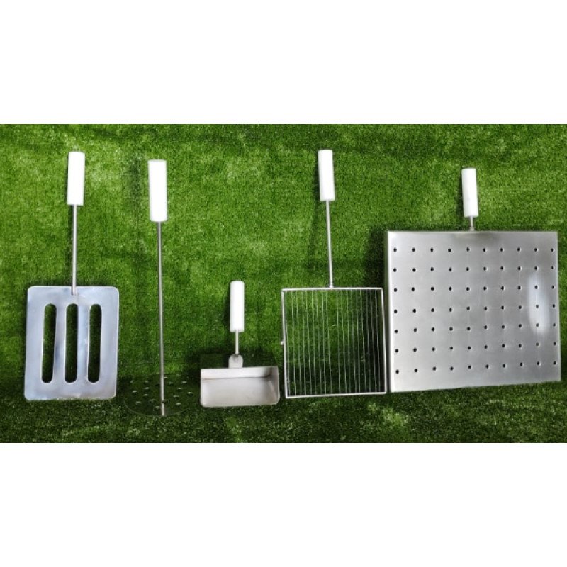 Na produção de queijo a adição de coalho e fermento lácteo é feita  com, auxilio do Agitador Misturador, o corte da massa é feito com Lira de dupla ação; a separação do soro é estimulada por um Garfo adequado; e a retirada do soro se dá com auxilio da Placa Dessora; e finalmente a massa dessorada é levada para as formas com uso da Pazinha adequada.